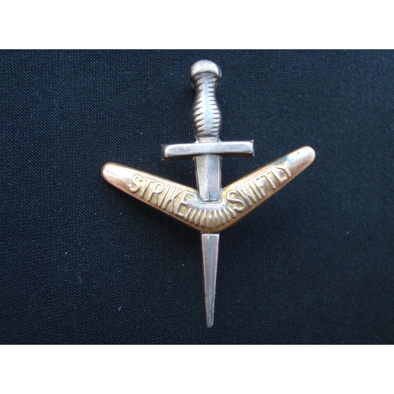 This is the first pattern ( has lines between the words either side of boomerang, rare badge in nice condition.